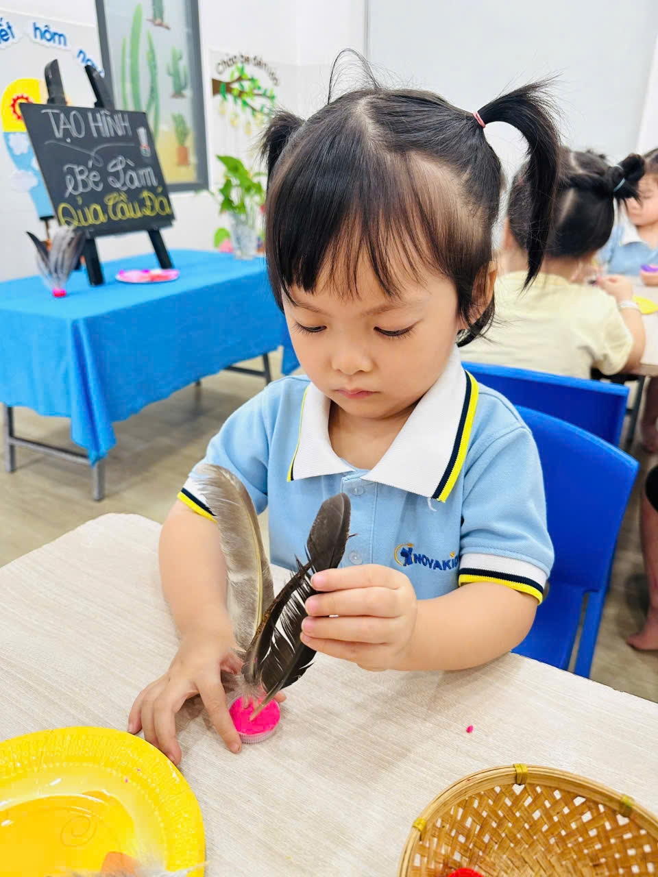 Để tạo hình chiếc cầu đá các bạn nhỏ sẽ sử dụng các nguyên vật liệu gồm có lông gà, nắp chai và đất nặn để tạo hình. Chỉ vậy thôi đó nhưng các con vô cùng khéo léo để tạo nên những chiếc cầu đá vô cùng độc đáo và lạ mắt.