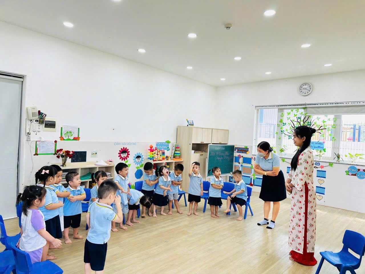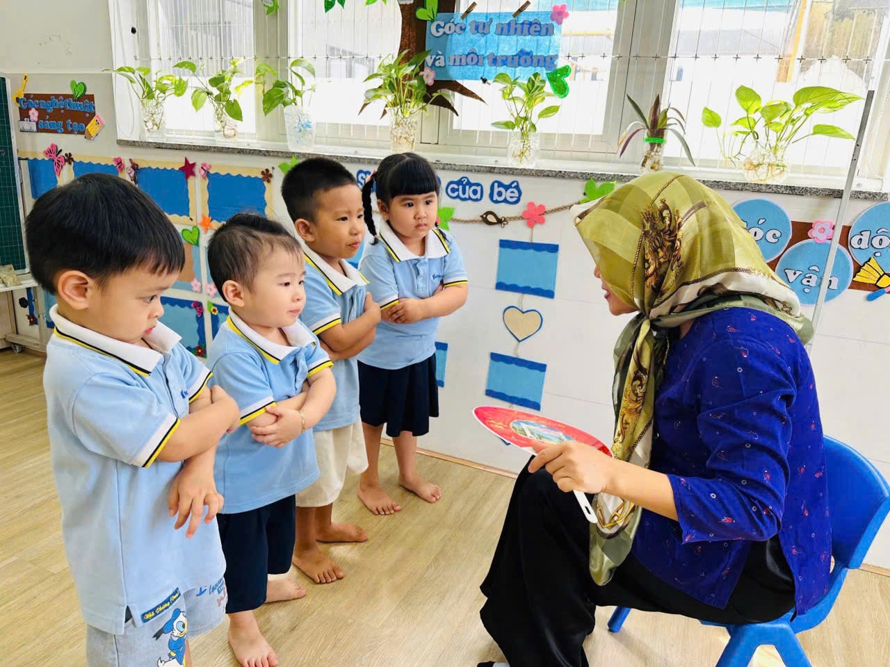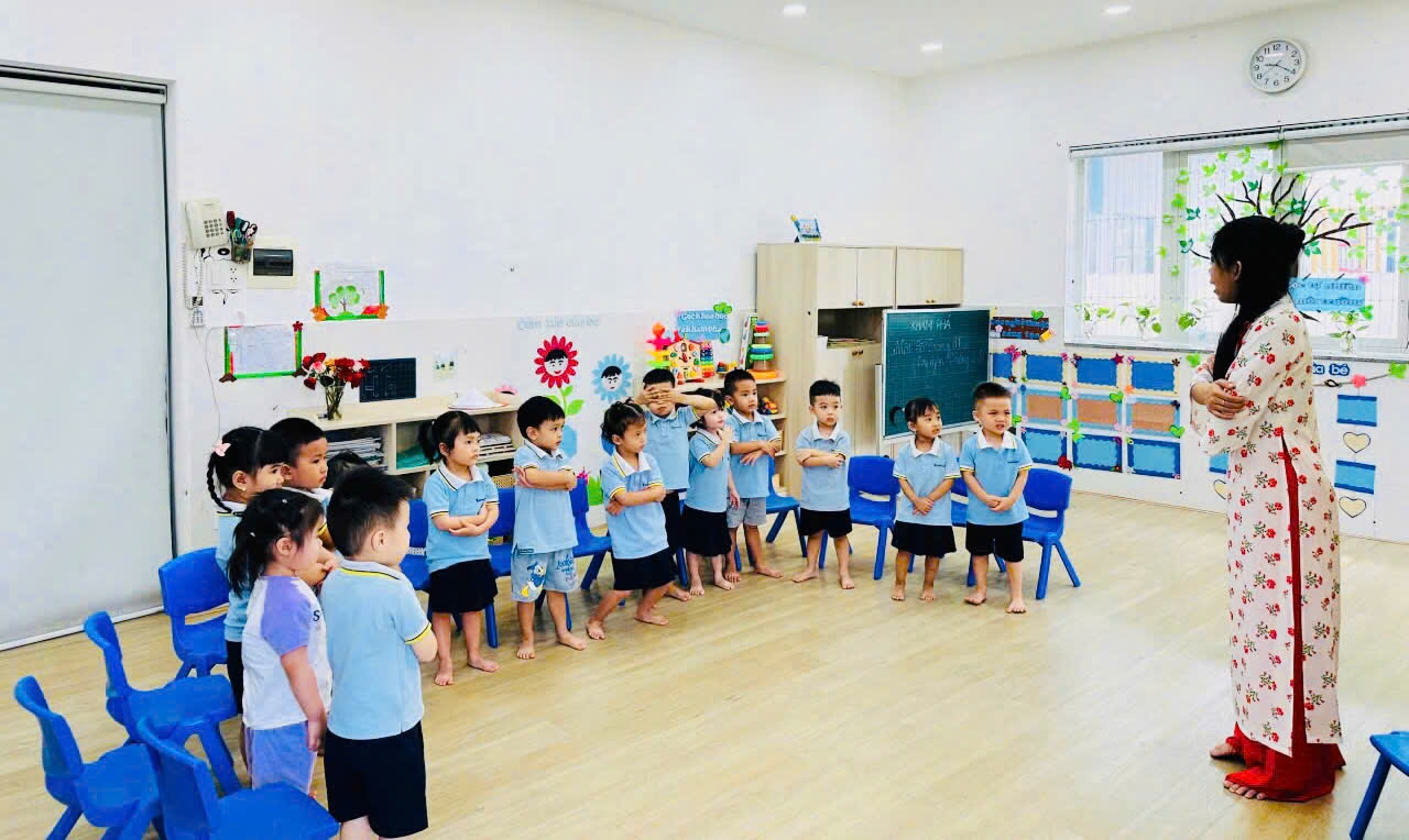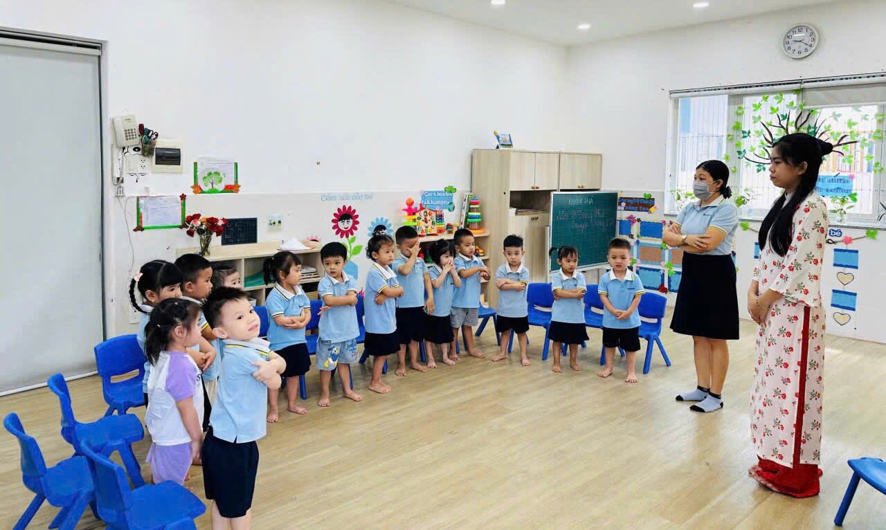 - Dạy trẻ khoanh tay chào ông bà, ba mẹ mỗi sáng khi đến lớp và chiều khi các con ra về.