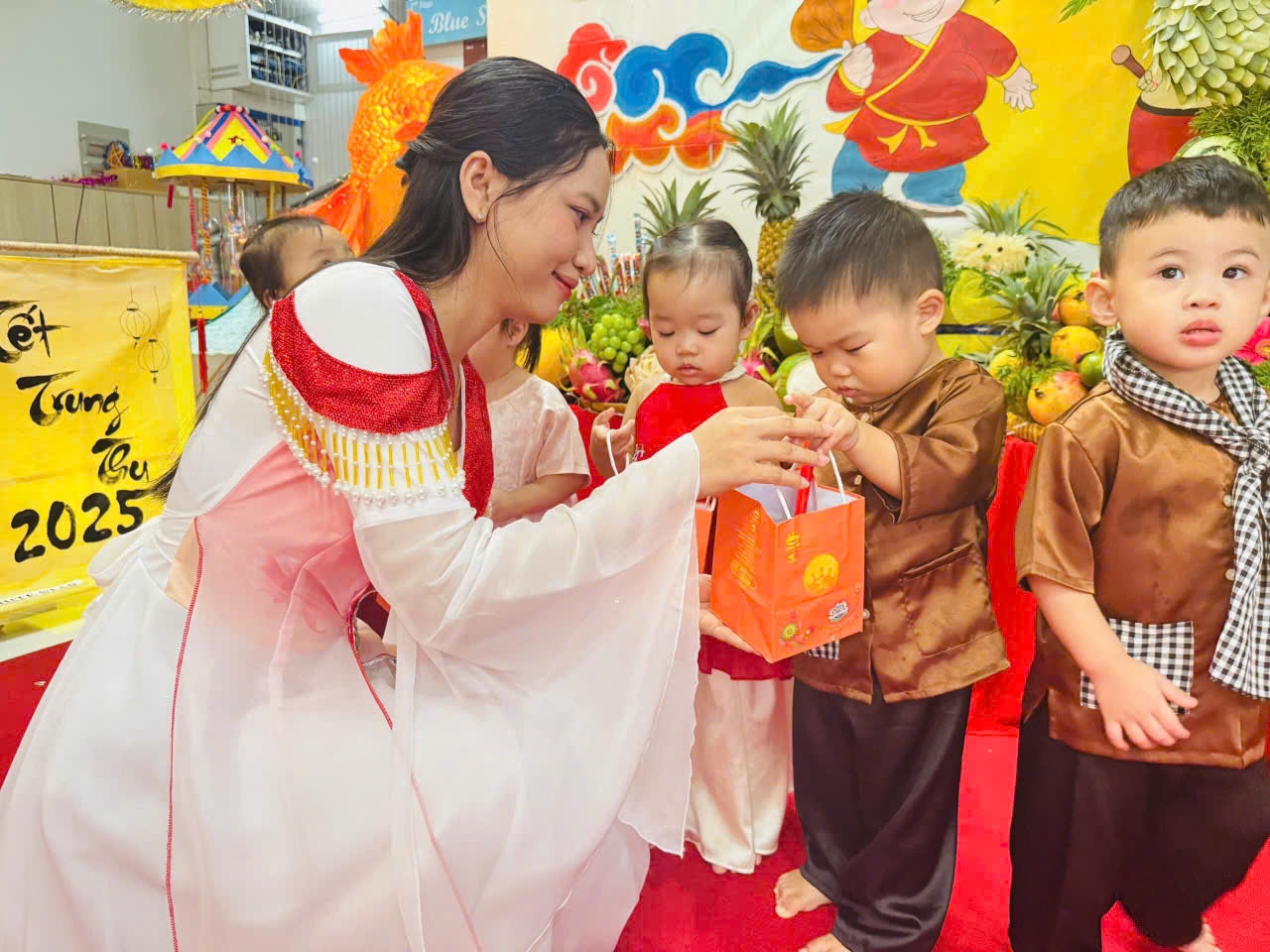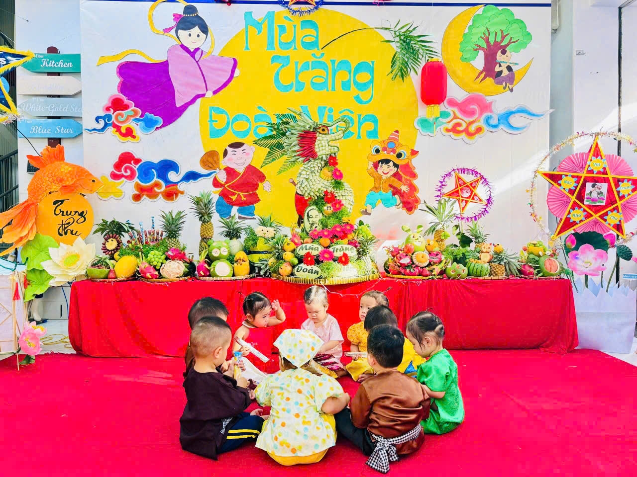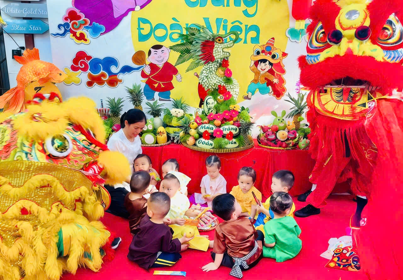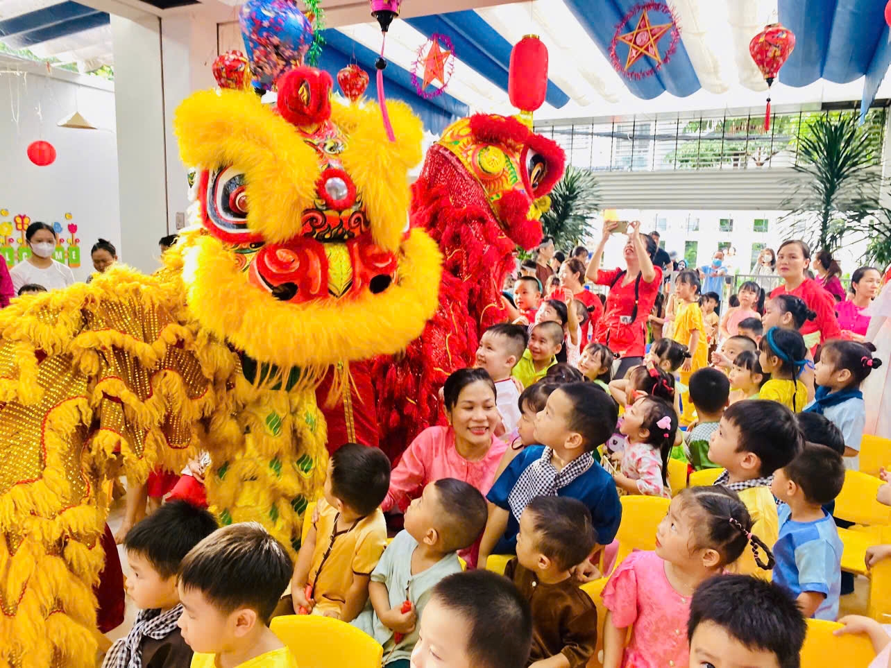 Mở màn chương trình là phần phát quà trung thu, các bạn nhỏ với tâm trạng hào hứng đứng xếp hàng nhận quà từ tay chị Hằng Nga, Chú Cuội và các nàng tiên, phần quà nhỏ đó là những chiếc lục lạc đáng yêu cùng chiếc bánh trung thu lân vàng đã được các cô giáo chuẩn bị sẵn để gửi đến các con. Để góp vui cho chương trình thì các bạn nhỏ cùng cô giáo đã chuẩn bị sẵn và mang đến những tiết mục múa thật sôi động, đáng yêu cùng những điệu nhảy vui tươi khiến sân trường trở nên bừng sáng. Tiếp theo sau là màn múa lân sôi động, tiếng trống vang lên giòn giã, các bạn nhỏ tay cầm chiếc lồng đèn xinh xắn, miệng cười thật tươi cùng đoàn múa lân đi rước lồng đèn xung quanh sân trường. Và sau cùng một khoảnh khắc được mong chờ nhất đó là phá cỗ Trung Thu đã khép lại buổi lễ trong không khí vui tươi, ấm áp và đầy ắp tình yêu thương.